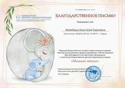 В 2022 году была участником муниципального этапа краевого конкурса "Лучшие педагогические работники ДОО"